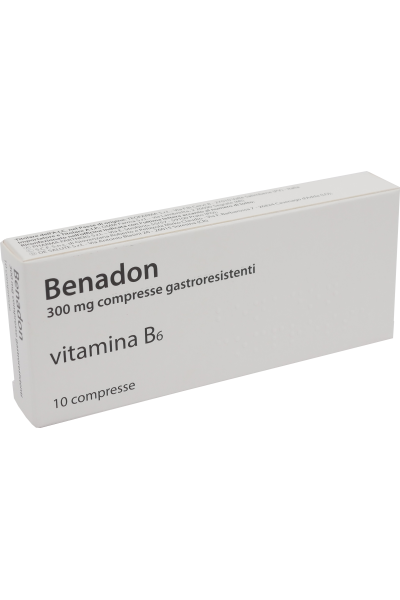 PosologiaBenadon è indicato per adulti e adolescenti a partire dai 12 anni di età. Posologia Una compressa al giorno per via orale, attenendosi alle indicazioni del medico. Nelle convulsioni e nelle anemie piridossino–sensibili, in alcuni pazienti possono essere necessarie dosi più elevate (600 mg al giorno o più). Per l’elevato dosaggio di vitamina B6, che supera ampiamente il dosaggio alimentare raccomandato, il prodotto non è indicato per l’uso in gravidanza e allattamento e nei pazienti con insufficienza renale ed epatica (vedere paragrafo 4.3). A dosi giornaliere di 300 mg o superiori la vitamina B6 non deve essere assunta per più di 5 mesi. Dopo 5 mesi di trattamento è necessaria una sospensione di almeno 25 giorni. Metodo di somministrazione Via di somministrazione: orale. Le compresse non devono essere masticate e devono essere inghiottite con una sufficiente quantità di acqua.