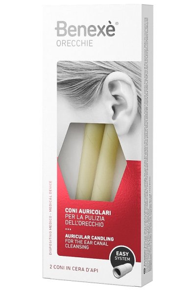 BENEXÈ coni auricolari è un metodo naturale che deve la sua origine ad un'antica tradizione popolare. Grazie alla sua azione termica il cerume viene ammorbidito e facilmente rimosso dalle orecchie.