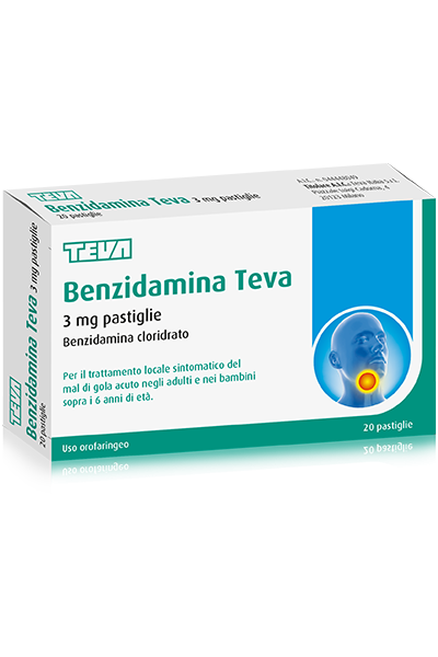 Indicazioni terapeuticheBenzidamina Teva 3 mg pastiglie è indicato per il trattamento locale sintomatico del mal di gola acuto negli adulti e nei bambini sopra i 6 anni di età.