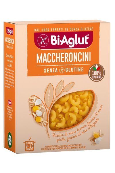 Pasta senza glutine a base di farina di mais bianco, giallo e farina di riso integrale - alimento senza glutine specificamente formulato per persone intolleranti al glutine.