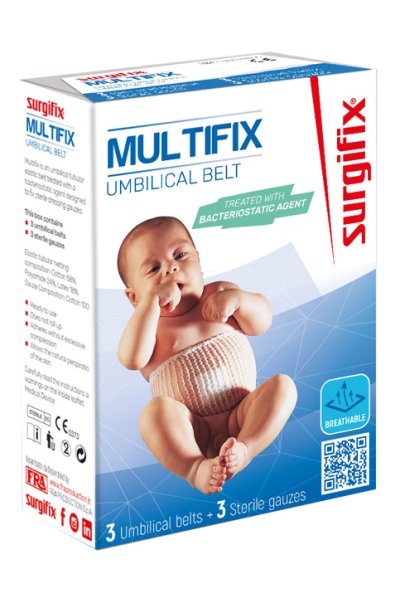 Cintura ombelicale per fissaggio di compresse, garze e medicazioni.