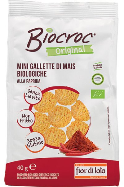 Mini gallette di Mais biologiche alla Paprika non fritte e senza lievito specificamente formulato per celiaci.