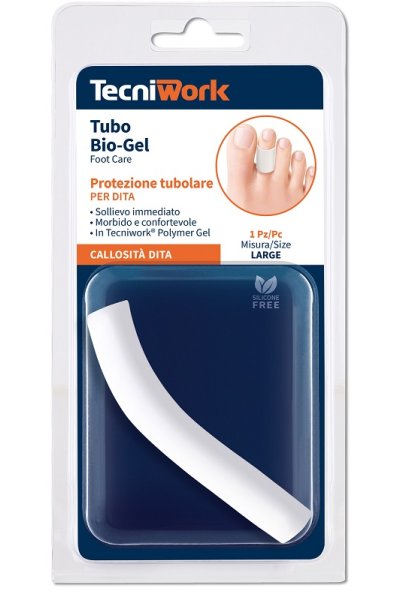 Protezione tubolare in Tecniwork Polymer Gel che protegge le dita da compressioni e sfregamenti. Previene e dona sollievo dal dolore in caso di callosità, calli dorsali e occhi di pernice, senza creare ingombro. Ritagliabile. Dispositivo medico lavabile e riutilizzabile.