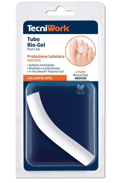 Protezione tubolare in Tecniwork Polymer Gel che protegge le dita da compressioni e sfregamenti. Previene e dona sollievo dal dolore in caso di callosità, calli dorsali e occhi di pernice, senza creare ingombro. Ritagliabile. Dispositivo medico lavabile e riutilizzabile.