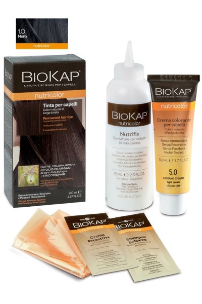 Biokap Nutricolor Tinta per la colorazione e la bellezza dei capelli. La formula a base di ingredienti vegetali e ad alta tollerabilità cutanea nutre e ripara i capelli mentre li colora e copre i capelli bianchi.