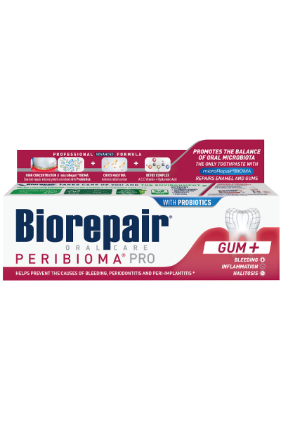 Mousse Biorepair PERIBIOMA PRO, dalla morbida e soffice consistenza, avvolge delicatamente le gengive donando sollievo e protezione duratura. La formula è a base di microRepair BIOMA, microcristalli ripara-smalto* arricchiti con specifici Probiotici selezionati che aiutano a riequilibrare il normale microbiota orale per proteggere dalle principali cause delle infiammazioni del cavo orale. Biorepair PERIBIOMA Mousse è potenziata con Mastica di Chios per un'azione antibatterica e antimicrobica. Le vitamine A, C, E e l’acido ialuronico arricchiscono la mousse con le loro proprietà antiossidanti e detox sui tessuti.