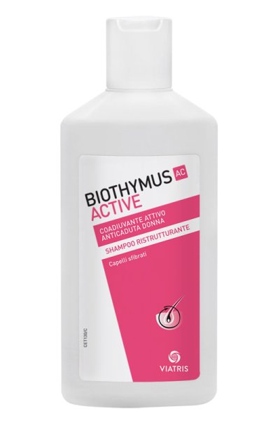 Shampoo specifico per donna, per la detersione dei capelli fragili, sfibrati che tendono al diradamento. La formula di Biothymus Ac Active shampoo ristrutturante contiene ingredienti e nutrienti specifici per favorire il ciclo vitale del capello.