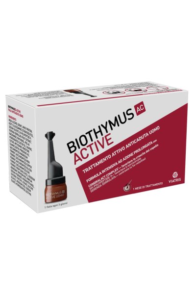 Trattamento coadiuvante specifico per l’uomo con capelli fragili che tendono a diradarsi, studiato per contrastare la fase iniziale e più intensa della caduta temporanea dei capelli (telogen effluvium). Indicate in caso caduta massiccia e prolungata (telogen effluvium ) dovuta a disordini alimentari, squilibri ormonali, stress, fumo, sole . La formula di Buothymus Ac Active fiale unisce ingredienti specifici per il ciclo vitale del capello a mediatori di assorbimento che ne prolungano l’attività. Modalità d'uso