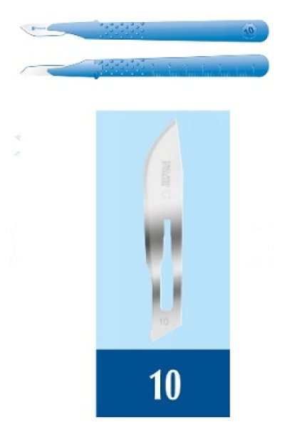 Monouso, sterile.Con lama in acciaio inox conforme alle specifiche ISO 7153, ISO 7740 e BS EN 27740. Dotato di cappuccio di protezione e manico con dispositivo antiscivolo.