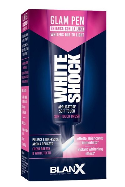 Con la formula BlanX White Shock, grazie al principio attivo brevettato ActiluX, Glam Smile si attiva con la luce e sbianca i denti per tutto il giorno.