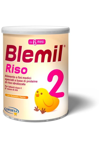 Alimento di proseguimento per lattanti a base di proteine di riso idrolizzate, alimento destinato a fini medici speciali per lattanti a partire dal 6° mese compiuto. E' da utilizzare come componente liquida di una dieta diversificata e non in sostituzione al latte materno durante i primi 4 mesi. Blemil 2 Riso è specialmente indicato nel trattamento dietetico dei lattanti con intolleranza o allergia al latte vaccino, intolleranza primaria o secondaria al lattosio, diarrea acuta o cronica e rialimentazione dopo un processo diarroico. Le proteine, parzialmente idrolizzate per facilitarne la digestione, derivano da un idrolizzato di proteine di riso. I carboidrati sono costituiti unicamente da maltodestrine e amido di mais. Non contiene lattosio né saccarosio. I grassi sono di origine vegetale con un contenuto di acidi grassi che favorisce la loro digeribilità e assorbimento.Ingredienti