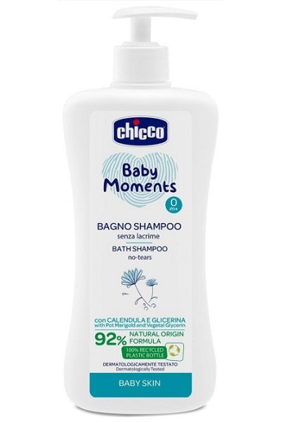 Testato dermatologicamente e oftalmologicamente, Chicco Bagno Shampoo Baby Moments è arricchito con estratto di calendula e glicerina vegetale per ammorbidire e nutrire in profondità la cute delicata del bambino.