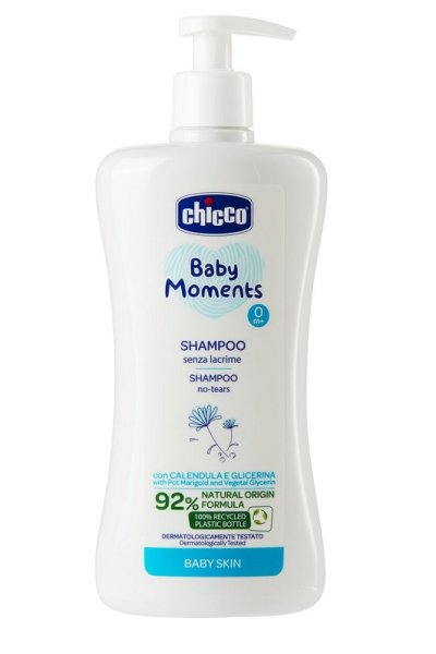 Shampoo, deterge senza irritare gli occhi. Formula 92% di origine naturale, arricchita con estratto di calendula, emolliente, e glicerina vegetale; rispetta il delicato equilibrio idrolipidico del cuoio capelluto e i capelli fini del bambino.