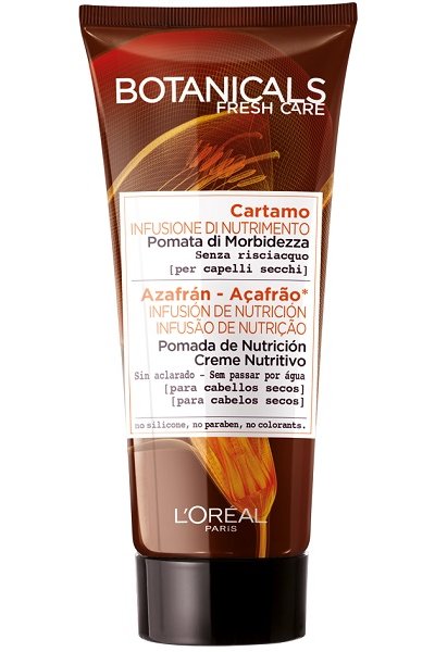 Infusione di nutrimento, con olio di cartamo, per ammorbidire e nutrire i capelli secchi.Associazione inedita di oli di cartamo, ricco in acidi grassi essenziali, di oli di soia e cocco in una formula trattamento che rimpolpa le fibre secche e nutre profondamente. Pomata di morbidezza, la cui formula è stata completata da un olio di semi di lino puro, un ingrediente naturale rinnovabile, riconosciuto per la sua abilità di polimerizzare a contatto con l'aria, creando in questo modo una copertura idro-repellente. Nutre, ammorbidisce e disciplina la capigliatura.