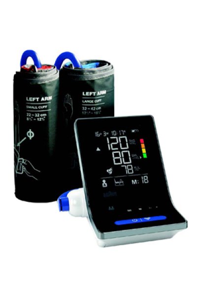 Il misuratore di pressione da braccio Braun ExactFit 3 è facile da usare e offre un monitoraggio comodo e preciso. Con una precisione professionale clinicamente testata e lo schema con codifica a colori dell'OMS, consente un'interpretazione facile e rapida della misurazione della pressione.