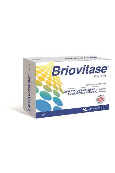 Indicazioni terapeuticheBRIOVITASE è indicato in tutti gli stati di carenza di potassio e di magnesio, che si manifestano generalmente con una sensazione di stanchezza, debolezza muscolare e crampi. Tali carenze possono essere provocate da eccessiva sudorazione, intensa attività fisica, diarree e vomito profusi.