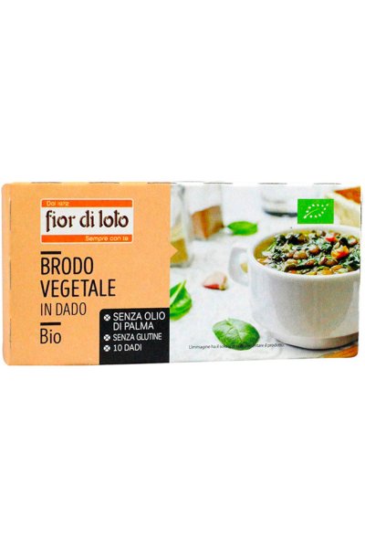 Brodo vegetale biologico in dado e senza olio di palma. Adatto ai vegani.
