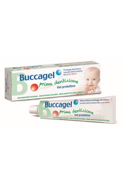 Buccagel Pima Dentizione gel, consigliato in presenza dei sintomi tipici della prima dentizione quali gonfiore, arrossamento gengivale ed eccessiva salivazione. Protegge dal dolore causato dall'eruzione dei primi denti. Buccagel prima dentizione contiene Estratti Vegetali e Acido Ialuronico, allevia il dolore gengivale e il fastidio legati alla prima dentizione.
