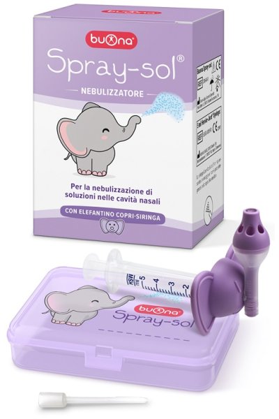 Buona Spray-Sol (nebulizzatore Spray-Sol, ago cannula, siringa luer lock da 5 ml, elefantino copri-siringa e contenitore).
