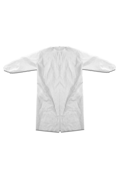 Camice in tessuto non tessuto, TNT da 30 g uso generico idrorepellente e traspirante. Materiale 100% polipropilene, Unisex TG. Unica; semicirconferenza torace 68 cm; lunghezza da spalla davanti 111 cm; elastico ai polsi, colore bianco. Da smaltire secondo la normativa vigente. Può essere incenerito senza formazione di residui tossici.