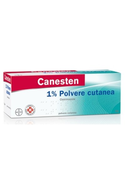 PosologiaCrema Canesten crema va applicato in piccola quantità 2–3 volte al giorno in corrispondenza della zona affetta, frizionando leggermente, dopo aver lavato ed asciugato accuratamente la parte. Mezzo cm di crema è sufficiente per trattare una superficie delle dimensioni di una mano. La crema è elettivamente indicata per il trattamento delle zone cutanee glabre (senza peli). Spray cutaneo soluzione Lo spray cutaneo soluzione trova utile impiego per il trattamento delle zone cutanee coperte da peli ed in corrispondenza delle pieghe cutanee. E’ inoltre indicato per l’applicazione su ampie aree del corpo (schiena, addome, torace). Canesten spray cutaneo soluzione va nebulizzato uniformemente sulla parte da trattare 2 volte al giorno. Polvere cutanea Canesten polvere va applicato 2–3 volte al giorno, dopo aver lavato ed asciugato accuratamente la zona interessata. Nel piede d’atleta si consiglia di cospargere con Canesten polvere anche l’interno delle calze e delle scarpe. In genere per la scomparsa delle manifestazioni, è sufficiente un periodo di trattamento senza interruzione di tre–quattro settimane. Al fine di consolidare i risultati terapeutici ottenuti ed evitare reinfezioni, è opportuno proseguire la terapia con Canesten per almeno due settimane dopo la scomparsa delle manifestazioni.