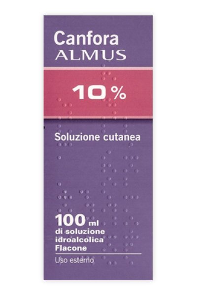 AvvertenzeQuesto prodotto contiene derivati terpenici che, in dosi eccessive, possono provocare disturbi neurologici come convulsioni in neonati e bambini. Il trattamento non deve essere prolungato per più di 3 giorni per i rischi associati all’accumulo di derivati terpenici quali ad esempio canfora, cineolo, niaouli, timo selvatico, terpineolo, terpina, citrale, mentolo e oli essenziali di aghi di pino, eucalipto e trementina (a causa delle loro proprietà lipofiliche non è nota la velocità di metabolismo e smaltimento) nei tessuti e nel cervello, in particolare disturbi neuropsicologici. Non deve essere utilizzata una dose superiore a quella raccomandata per evitare un maggior rischio di reazioni avverse al medicinale e i disturbi associati al sovradosaggio (vedere paragrafo 4.9). Il prodotto è infiammabile, non deve essere avvicinato a fiamme. Non usare soluzioni a base di canfora concentrate, contenenti più dell’11% di canfora, perché possono essere irritanti e pericolose. Non ingerire la soluzione di canfora, in quanto può causare effetti indesiderati gravi, compreso il decesso. Canfora soluzione cutanea non deve essere applicata sulle narici dei bambini anche in piccola quantità perché potrebbe causare shock. Informazioni importanti su alcuni eccipienti: Canfora Almus 10% soluzione cutanea, 1 flacone 100 ml soluzione oleosa contiene olio di arachidi raffinato. Non utilizzare questo medicinale in caso di allergia alle arachidi o alla soia. Canfora Almus 10% soluzione cutanea, 1 flacone 100 ml soluzione idroalcolica contiene idrossianisolo butilato e idrossitoluene butilato che possono causare reazioni cutanee locali (ad es. dermatiti da contatto) o irritazione degli occhi e delle mucose.