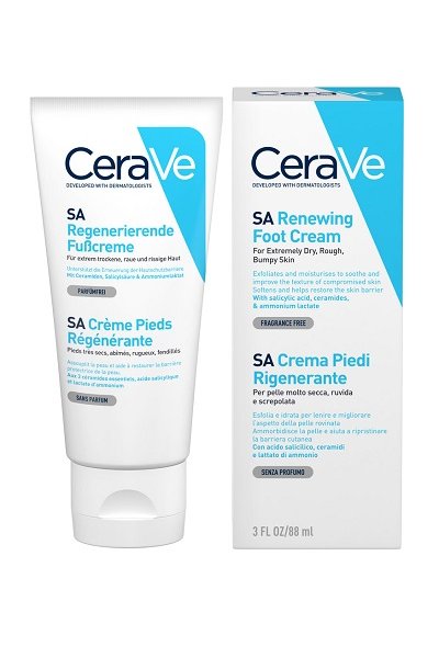 Idrata in profondità e aiuta a ripristinare la barriera protettiva della pelle dei piedi. Questa crema a rapido assorbimento e senza effetto unto, con 3 ceramidi essenziali e acido ialuronico, esfolia e idrata per 24 ore la pelle molto secca e screpolata dei piedi, rendendola morbida e liscia.