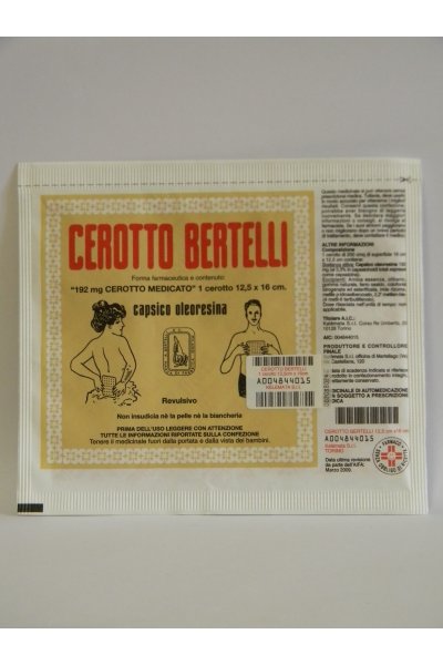 PosologiaLiberato dalla carta siliconata che ne protegge lo strato adesivo Cerotto Bertelli si applica sulla cute previamente asciugata facendolo aderire perfettamente con un leggero massaggio. L'azione del Cerotto Bertelli si esplica generalmente entro 24 ore. Tuttavia, se l'effetto non è stato raggiunto entro questo periodo di tempo, Cerotto Bertelli può rimanere applicato più a lungo (infatti Cerotto Bertelli può essere applicato più volte consecutive senza inconvenienti), oppure più convenientemente, può essere sostituito con un altro.