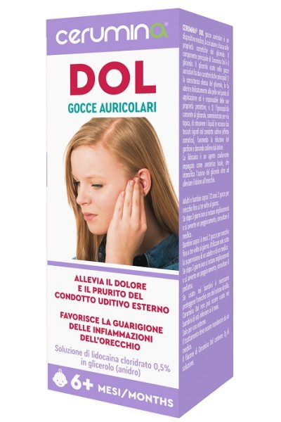 Cerumina Dol ha un effetto coadiuvante nei seguenti casi: condizioni infiammatorie caratterizzate da gonfiore, dolore e prurito del condotto uditivo esterno; disturbi accompagnati da dolore provocati da una regolare esposizione all'acqua e all'umidità, ad esempio in piscina; disturbi accompagnati da dolore provocati dall'uso prolungato di cuffie o dal cerume che ostruisce il condotto uditivo esterno; disturbi accompagnati da dolore provocati dall'uso frequente di detergenti che ditruggono la membrana naturale che protegge il condotto uditivo esterno, come ad esempio shampoo, saponi, gel.