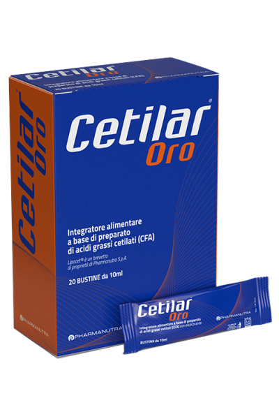 Integratore alimentare a base di preparato di acidi grassi cetilati (CFA), consistente principalmente in una miscela di acido miristico cetilato e acido oleico cetilato sintetizzati da alcole cetilico, acido miristico e acido oleico e, in misura minore, altri acidi grassi cetilati e altri composti dell'olio d'oliva.