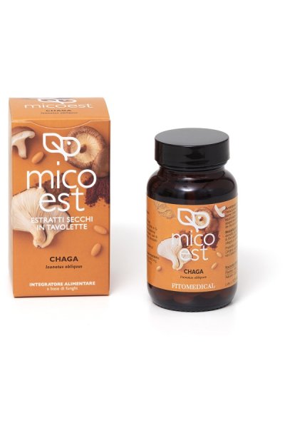 Chaga [Inonotus obliquus (Fr.) Pilàt] scleroio e.s. al 40% in polisaccaridi e al 30% in beta-glucani 33,3%; stabilizzanti: cellulosa microcristallina (gel di cellulosa), calcio fosfato; antiagglomeranti: sali di magnesio degli acidi grassi di origine vegetale, diossido di silicio.