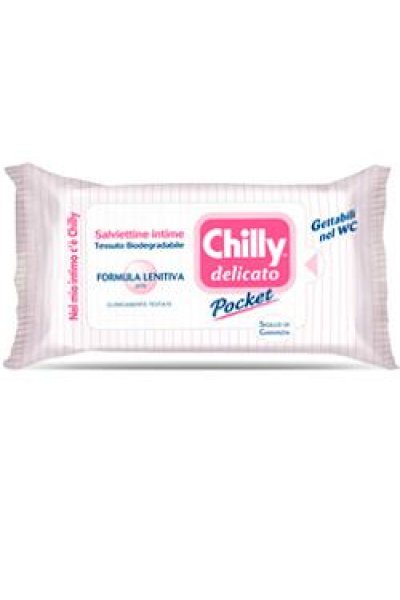 Le salviettine intime Chilly Delicato Formula Lenitiva garantiscono delicatezza e sensibilità in ogni momento della giornata, anche alle donne con pelle e mucose sensibili. In morbido tessuto 100% biodegradabile. Gettabili nel WC. pH5, ipoallergeniche e clinicamente testate. Approvate dall'Associazione Ginecologi A.Gi.Co.Componenti