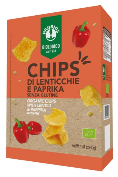 Farina di lenticchie* 42,6%, amido di patate*, olio di semi di girasole*, farina di patate*, sale, paprika dolce* 0,9%, cipolla*, aglio*, pomodoro*, levistico*, curcuma*.