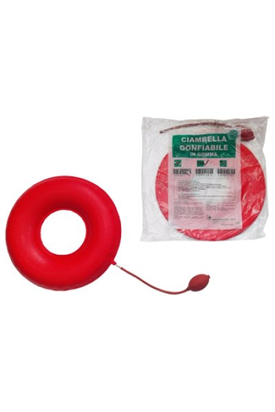 Il presente dispositivo ha lo scopo di alleviare alcuni sintomi e/o disfunzioni generate da malattie sul corpo umano. Il dispositivo deve essere gonfiato con aria prima dell'uso e al proprio interno non possono essere introdotti liquidi o altre sostanze. Cuscino gonfiabile con forma ad anello per dare conforto e sostegno a qualsiasi superficie di appoggio; utile soprattutto dopo un intervento chirurgico o in determinate condizioni mediche come le emorroidi e altre simili. Costruito in gomma resistente a lunga durata.