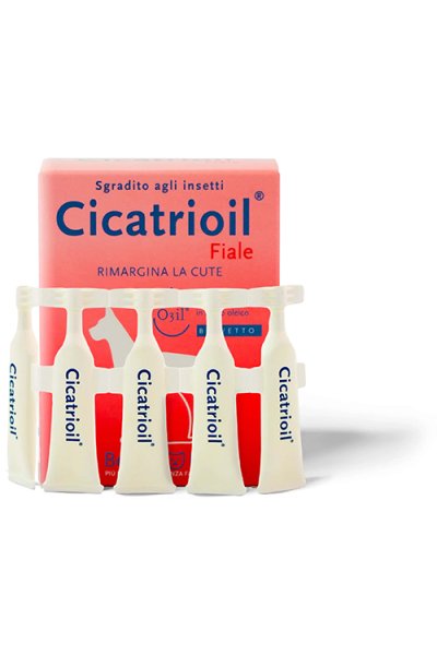 Coadiuva la rigenerazione e la riparazione di ferite e lesioni agisce contro le infezioni da microrganismi e parassiti. Cicatrioil fiale e` utile in caso di ferite traumatiche, lacero-contuse, chirurgiche, ulcere, piaghe da decubito, ascessi, fistole, prolasso del retto, verruche, escoriazioni, abrasioni, micosi e onicomicosi, punture d’insetto e parassiti, bolle, ponfi. Il prodotto facilita la gestione delle lesioni anche durante i periodi estivi perche’ e` sgradito a ditteri ed insetti.