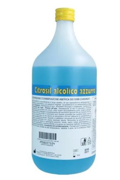 Il disinfettante citrosil alcolico azzurro è una soluzione pronta all'uso per utilizzo sanitario e ospedaliero che assicura una rapida azione battericida sui ferri chirurgici. Citrosil azzuro è in formula pura, senza diluizione, per la conservazione sterile degli strumenti chirurgici, eliminando ogni traccia di microrganismi.