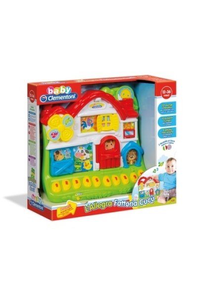 Centro attività parlante educativo per imparare in compagnia dei 12 allegri personaggi. Insegna i numeri, i nomi e i versi degli animali con tante allegre canzoncine e divertenti filastrocche. La porta si apre, il mulino gira e le finestrelle scorrono con simpatici effetti cucù. Gli animali della fattoria sono tutti interattivi con tecnologia Smart Touch, per coinvolgere i bambini in un mondo di divertimento e apprendimento.