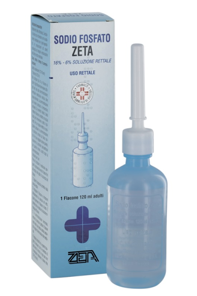 AvvertenzePopolazione pediatrica Il flacone da 120 ml non deve essere utilizzato nei bambini di età inferiore a 12 anni. L’abuso di lassativi (uso frequente o prolungato o con dosi eccessive) può causare diarrea persistente con conseguente perdita di acqua, sali minerali (specialmente potassio) e altri fattori nutritivi essenziali. Nei casi più gravi è possibile l’insorgenza di disidratazione o ipopotassiemia la quale può determinare disfunzioni cardiache o neuromuscolari, specialmente in caso di contemporaneo trattamento con glicosidi cardiaci, diuretici o corticosteroidi. I pazienti devono essere incoraggiati a bere liquidi per aiutare a prevenire la disidratazione, in particolare i pazienti con condizioni che possono predisporre a disidratazione, o quelli che assumono medicinali che possono diminuire la velocità di filtrazione glomerulare, come i diuretici, gli inibitori dell’enzima di conversione dell’angiotensina (ACE inibitori), i bloccanti del recettore dell’angiotensina (sartani) o gli anti–infiammatori non steroidei (FANS). Dato che Sodio fosfato Zeta contiene fosfati di sodio, vi è il rischio di elevati livelli sierici di sodio e fosfato e diminuzione dei livelli di calcio e potassio, e di conseguenza ipernatriemia, iperfosfatemia, ipocalcemia e ipopotassiemia, che si possono verificare con segni clinici come tetania e insufficienza renale. L’abuso di lassativi può causare dipendenza (e, quindi, possibile necessità di aumentare progressivamente il dosaggio), stitichezza cronica e perdita delle normali funzioni intestinali (atonia intestinale). L’uso ripetuto di lassativi può dare origine ad assuefazione o danni di diverso tipo. L’impiego prolungato di un lassativo per il trattamento della stipsi è sconsigliato. Il trattamento farmacologico della stipsi deve essere considerato un adiuvante al trattamento igienico–dietetico (es. incremento di fibre vegetali e di liquidi nell’alimentazione, attività fisica e rieducazione della motilità intestinale). Il trattamento della stitichezza cronica o ricorrente richiede sempre l’intervento del medico per la diagnosi, la prescrizione dei farmaci e la sorveglianza nel corso della terapia. Un’attenta valutazione del medico è indispensabile quando la necessità del lassativo deriva da un improvviso cambiamento delle precedenti abitudini intestinali (frequenza e caratteristiche delle evacuazioni) che duri da più di due settimane o quando l’uso del lassativo non riesce a produrre effetti. È opportuno che i soggetti anziani o in non buone condizioni di salute e i pazienti con ipertensione arteriosa non controllata, ascite, malattie cardiache, cambiamenti della mucosa rettale (ulcere, fessure), consultino il medico prima di usare il medicinale. I pazienti devono essere avvertiti di interrompere la somministrazione, se si incontra resistenza, dato che la somministrazione forzata del clistere può provocare lesioni. Negli episodi di stitichezza, si consiglia innanzitutto di correggere le abitudini alimentari integrando la dieta quotidiana con un adeguato apporto di fibre ed acqua. Quando si utilizzano lassativi è opportuno bere al giorno almeno 6–8 bicchieri di acqua, o altri liquidi, in modo da favorire l’ammorbidimento delle feci. Informazioni importanti su alcuni eccipienti Sodio fosfato Zeta 16% /6% soluzione rettale contiene: – Bronopol che può causare reazioni cutanee locali (es. dermatite da contatto);