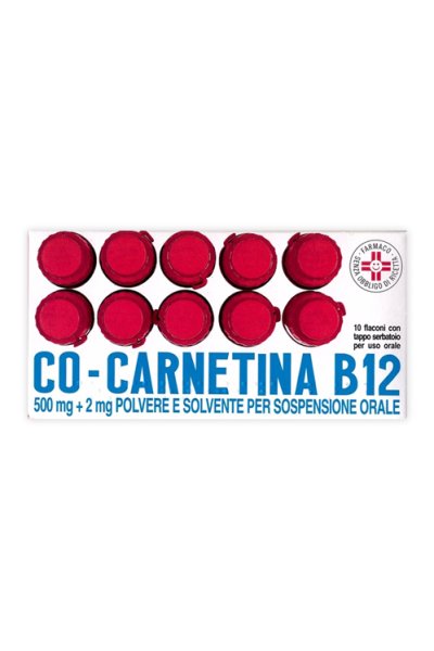 Un tappo contiene: Principio attivo: Cobamamide mcg 2000 Eccipienti: polietilenglicole 4000 mg 7 mannitolo polvere mg 161 Un flacone contiene: Principio attivo: L-Carnitina sale interno mg 500 Eccipienti: sorbitolo soluzione 70% g 4,075 sodio benzoato g 0,048 succo amarena g 0,98 succo orzata g 0,98 saccarosio g 1,5 acqua demineralizzata q.b. a ml 10