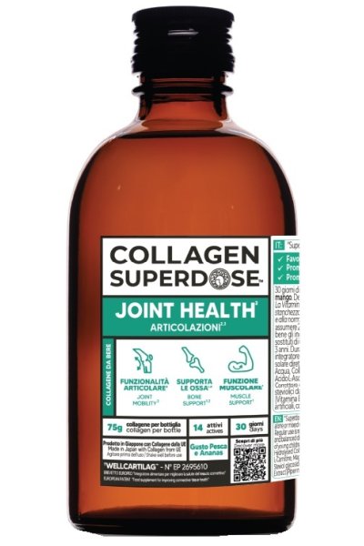 Acqua, collagene idrolizzato; correttore di acidità: acido citrico; glucosamina cloridrato, MSM (metilsulfonilmetano); correttore di acidità: acido malico; vitamina C (acido L-ascorbico), aromi, condroitinsolfato (pesce), L-carnitina, cloruro di magnesio, estratto di zenzero (Zingiber officinalis Rosc.) rizoma, Estratto di Maca (Lepidium meyenii Walp.) radice; edulcorante: glicosidi steviolici da stevia; acido ialuronico; conservante: benzoato di sodio; vitamina B12 (cianocobalamina), vitamina B6 (cloridrato di piridossina), tiamina (mononitrato di tiamina - vitamina B1), vitamina D3 (colecalciferolo), piperina da pepe nero (Piper nigrum L.) frutto (Bioperine).