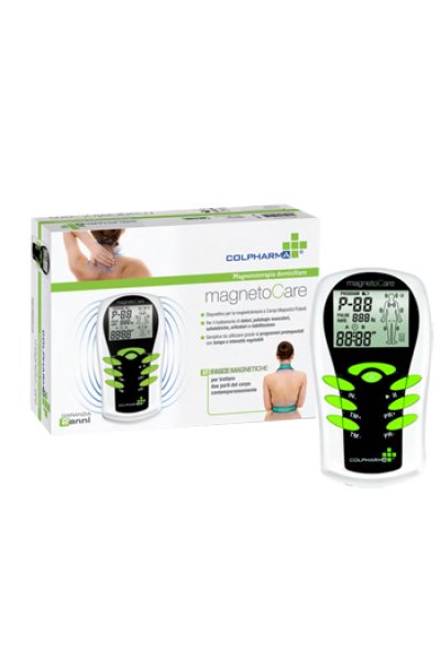 MagnetoCare è un dispositivo per la magnetoterapia a campi magnetici pulsati ad alta frequenza e bassa intensità per uso domiciliare. Per il trattamento di dolori acuti o cronici, reumatismi, contusioni, infiammazioni e patologie a carico dei tessuti molli come muscoli, tendini, cute e nervi. Efficace anche in caso di artriti/artrosi, osteoporosi, per la rigenerazione ossea e articolare, per ritardi di consolidamento e per la stimolazione vascolare. Dispone di 20 programmi preimpostati (frequenza 8-640 Hz) identificati dal nome delle patologie più comuni, con tempo e intensità regolabili. Dotato di 2 canali indipendenti per trattare 2 parti del corpo contemporaneamente. Facile da usare su tutte le parti del corpo, grazie alle fasce magnetiche in dotazione.