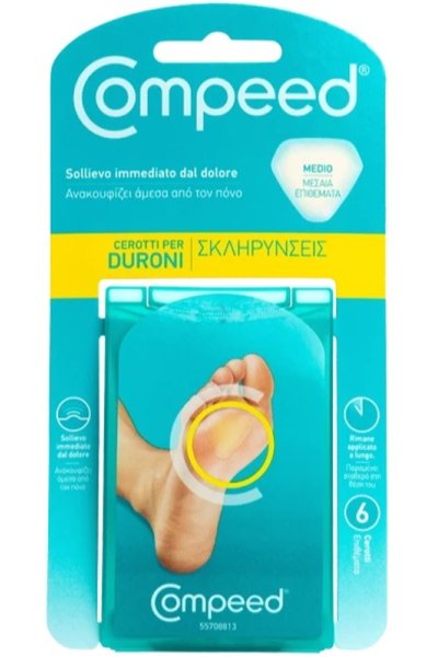 Compeed agisce come una seconda pelle e aiuta e riequilibrare il naturale livello di umidità per proteggere contro lo sfregamento e la pressione, donare sollievo immediato dal dolore dei duroni e idratare ed ammorbidire il durone per favorirne la rimozione.