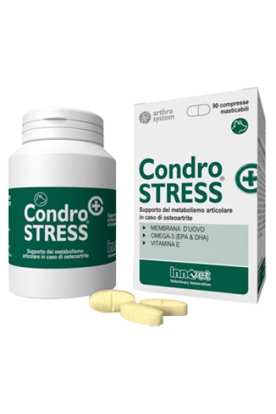Supporto del metabolismo articolare in caso di osteoartrite. Condostress+ è indicato per cani di qualsiasi età affetti da osteoartrite primaria o secondaria. Nell'animale anziano, in particolare, preserva la capacità di movimento e migliora di conseguenza la qualità di vita.