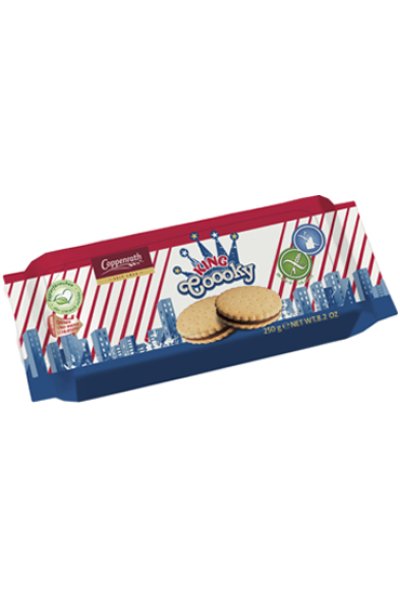 Biscotto senza glutine e senza lattosio, formato da due biscotti circolari con uno strato interno di crema al cioccolato (30%).