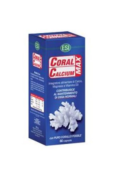 Integratore alimentare di calcio, magnesio, vitamina D3 e corallo fossile. Essendo questi nutrienti essenziali per il metabolismo osseo, rappresentano un ottimo coadiuvante per i problemi legati alla perdita di massa ossea e/o alla fragilità ossea. Inoltre il corallo contiene microdosi di oltre 70 minerali. Le dosi raccomandate di Coral Calcium Max garantiscono l’assunzione della giusta quantità di calcio, magnesio e vitamina D3 (100% dell’RDA per ciascuno dei 3 nutrienti). Corallo prelevato rispettando la natura, senza distruggere la barriera corallina ed i fondali marini. Non contiene: derivati del latte, zuccheri aggiunti, conservanti aggiunti, coloranti artificiali, aromi artificiali, ogm.Ingredienti