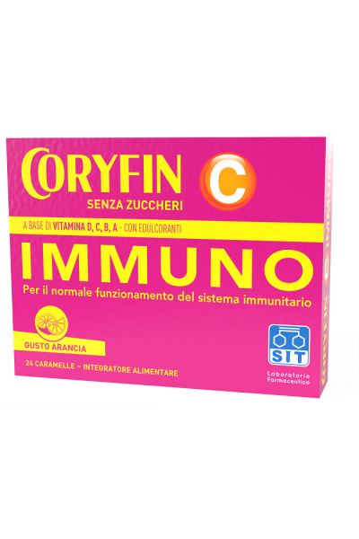 Coryfin C Immuno è un integratore alimentare di vitamina D, vitamina C, vitamine del gruppo B e vitamina A che contribuiscono alla normale funzione del sistema immunitario (vitamine D, C e A), alla riduzione della stanchezza e dell’affaticamento e al normale metabolismo energetico (vitamine B2, B6, B12).