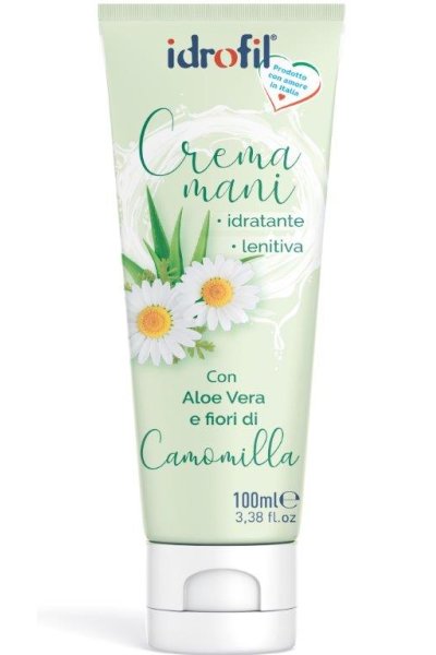 Crema mani idratante e lenitiva con aloe vera e fiori di camomilla.