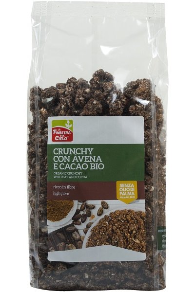 Muesli croccante biologico con fiocchi di avena e cacao (miscela di cereali e frutta secca), fonte di fibre, senza olio di palma.