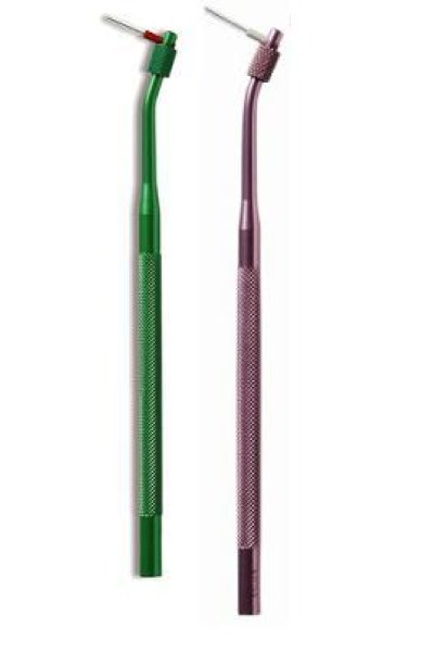 manico portascovolini in metallo con attacco a baionetta, con vite di sicurezza per un fissaggio molto resistente anche all'uso energico.