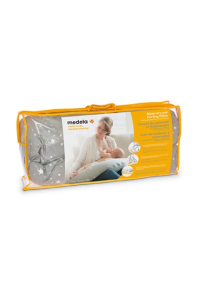 Il cuscino per la gravidanza e l'allattamento di Medela è stato sviluppato con un design regolabile e avvolgente e con un'imbottitura di silenziose microperle per dare sostegno alle braccia e al collo durante l'allattamento al seno.